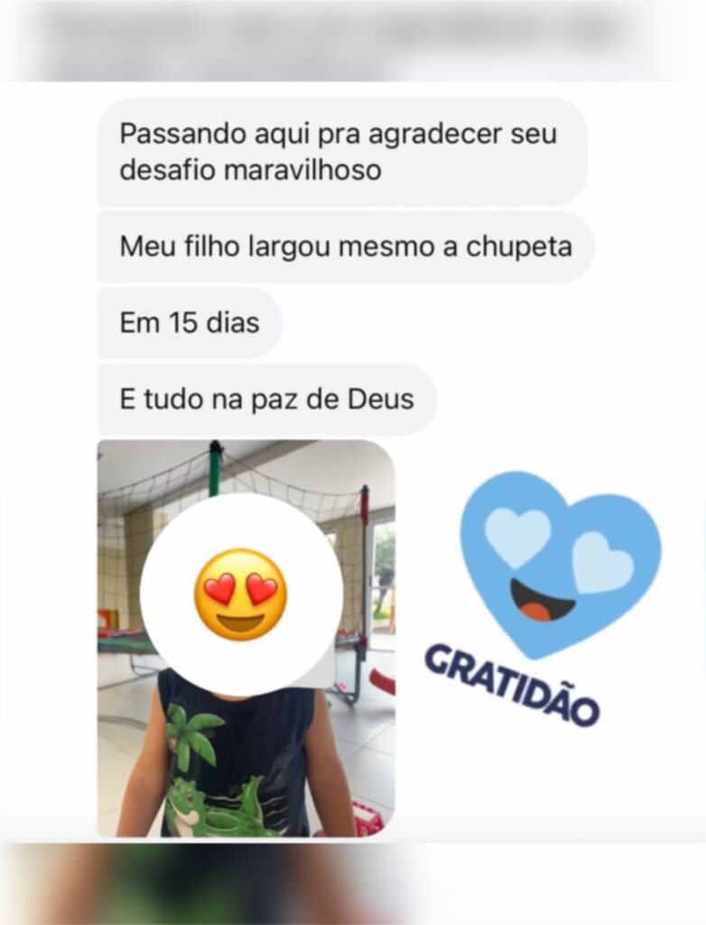O Desapego Oral em 15 Dias trabalha regulação emocional + regulação sensorial, o que reduz recaídas e insegurança.
