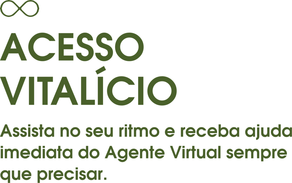 Além disso, você conta com um agente virtual exclusivo, que te orienta sobre o que fazer em cada etapa, sem precisar rever o curso todos os dias.